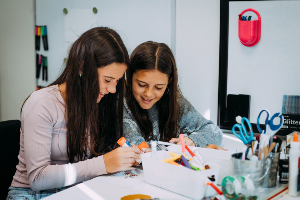 With teens: She focuses on creating a space that offers control and autonomy, encouraging self-reflection and awareness of self-identity. Katherine supplies materials and offers minimal instruction, allowing teens to process their art as they wish.